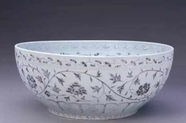(2)紋飾:受「重農抑商」政策影響,多畫「農耕、花卉」題材 —— 比如纏枝蓮紋(花瓣肥碩,線條粗獷)、折枝菊紋(花瓣分層少,像「太陽花」),少見元代的「人物故事紋」(因洪武禁止民間用複雜紋飾)。