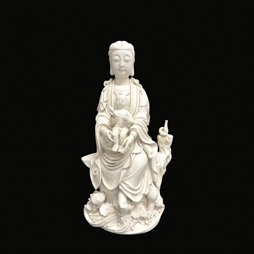 - 清德化窯送子觀音像:北京保利國際拍賣有限公司 2024 年拍賣的一件清中期德化觀音抱子坐像,尺寸為高 33cm,估價為 20 萬 – 30 萬元人民幣。