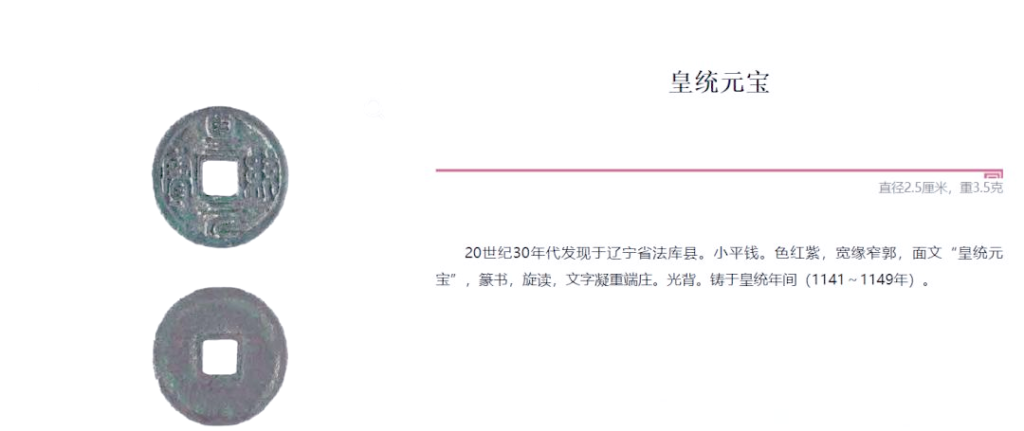 《金史・食貨志》中記載:「金初,遼、宋舊錢得以流通。至天會末年,『阜昌元寶』與『阜昌重寶』等偽齊政權鑄錢亦被採用。」事實上,金代的幣制並非僅限於舊錢,而是在此之前就已開始發行鈔票。據《金史・太宗紀》所述,天會十一年(1133 年)八月,黃龍府設立了錢帛司,這表明當時所使用的遼、宋舊錢及偽齊鑄錢已足夠應對商品流通和邊境貿易的需求,因此並無自行鑄錢的必要。