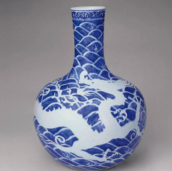 龍作為中國古代的吉祥象徵,被廣泛應用於各種藝術品中。而在青花留白瓷器上,龍紋被留白處理,與青花底色形成鮮明對比,更加凸顯出龍的矯健威猛和氣勢磅礴。