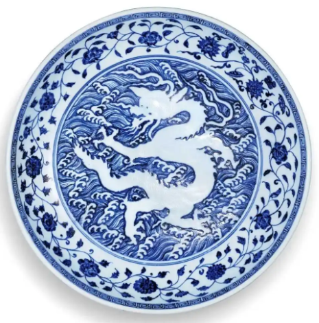 曾經在 2021 年丹麥 Bruun Rasmussen 拍賣會上,一件明永樂青花留白錐刻龍紋海浪大盤登場,當時估價僅 20-30 萬丹麥克朗。出乎拍賣行所有人的預料,當工作人員輕輕舉起那件青花留白龍紋瓷盤的瞬間,一場激烈的競價戰即刻爆發,價格如同脫缰野馬般一路狂飆。