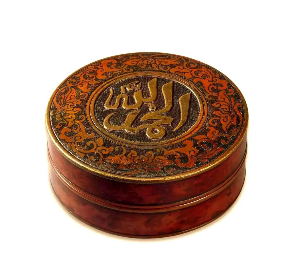 明正德年間,一款銅質阿拉伯文香盒誕生。這款香盒設計精巧,由盒身與盒蓋兩部分巧妙組合,尺寸適中,便於單手把握。其以銅為主材,輔以精湛的雕刻與鑲嵌工藝,不僅實用,更顯得精美絕倫。