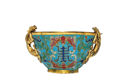 目前关于掐丝珐琅花卉纹夔龙耳杯明确的历史最高成交价暂无确切的公开信息。不过,类似的掐丝珐琅器物在拍卖市场上有较高的成交价格。例如,清乾隆掐丝珐琅夔龙缠枝莲纹双耳三足鼎式炉在 2022 年香港苏富比秋拍中,以 1489.5 万港元成交。
