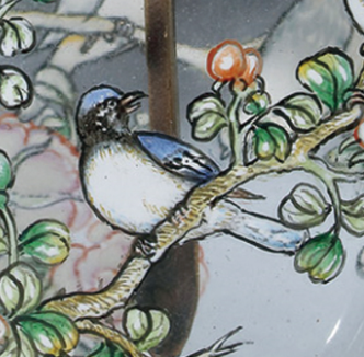 - 制作工藝:先用玻璃制胎,再以彩色琺瑯顏料在胎體表面繪畫,最後放入小窯焙燒。由于玻璃與琺瑯顏料的熔點非常接近,繪畫後入窯焙燒時,溫度低了,成色不佳,溫度高了則胎體變形,所以制作難度極大,傳世數量稀少。