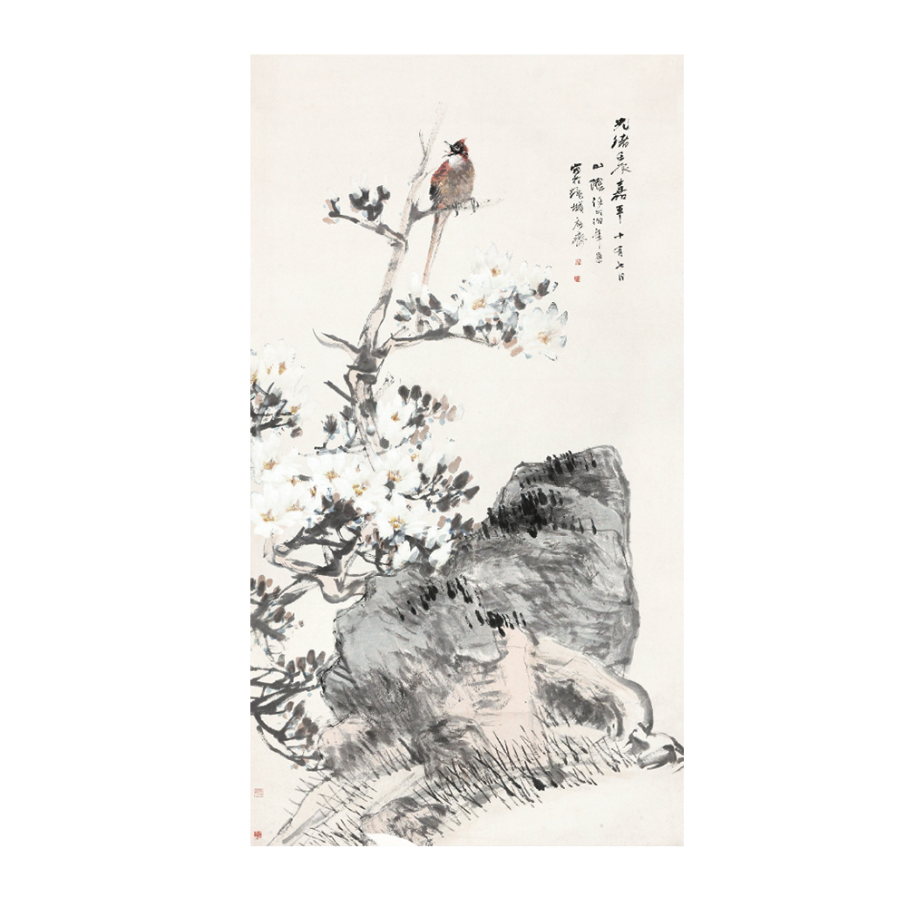 2019 年北京保利「近代藝術夜場」中,這幅中期創作的花鳥畫,因「題材經典、色彩鮮活」,雖有輕微折痕(不影響畫面主體),仍以人民幣 2875 萬元成交。作品中牡丹飽滿豔麗,雙鶯棲於枝頭,眼神靈動,工筆細描的花瓣與寫意揮灑的枝葉相得益彰,是研究任伯年「兼工帶寫」技法的「重要實物資料」。