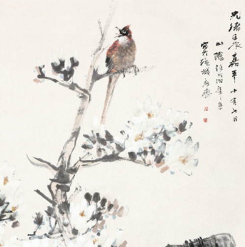 任伯年的花鳥畫創作貫穿其藝術生涯,核心源於他「以生活為師」的創作理念。他早年為民間畫師,擅長描繪民俗場景,後轉攻文人畫,却始終保留「貼近生活」的特質 —— 清末民初的上海,市井繁華,庭院花木、街頭禽鳥都是他的創作素材。他筆下的花鳥,不僅是「自然景物的再現」,更暗含對生活的熱愛:牡丹象征「富貴吉祥」,鶯啼象征「春回大地」,蝴蝶、蜜蜂象征「生機盎然」,這些意象既符合大眾對「美好生活的嚮往」,又蘊含文人「道法自然」的審美,實現了「雅俗共賞」的藝術高度。