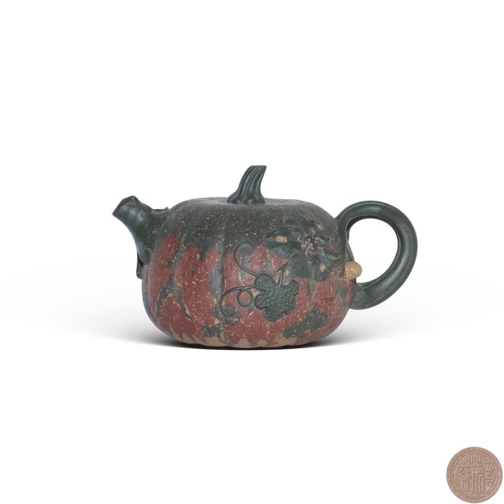 需特別注意的是,若蔣蓉紫砂南瓜壺為「帶有大師親筆題跋、多次出版記錄」或「名家遞藏有序」的作品,成交價格可突破 1500 萬元人民幣。例如 2018 年澳門多祿溙國際拍賣拍出的《紫砂南瓜壺》(1985 年創作,附有蔣蓉親筆題字「田園小趣」,且曾收入《蔣蓉紫砂藝術》),最終以港幣 1180 萬元(約合人民幣 980 萬元)成交,其「文化意義 + 藝術價值」的雙重屬性,使其成為藏界追捧的「頂級珍品」。