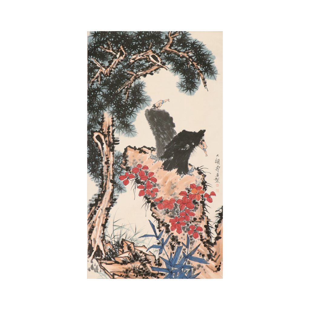 2022 年香港佳士得春拍中,一件潘天寿晚年《雙禽棲石圖》(52×41cm,曾為海外藏家舊藏),以 298 萬港元成交