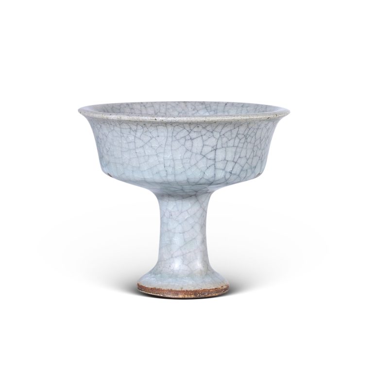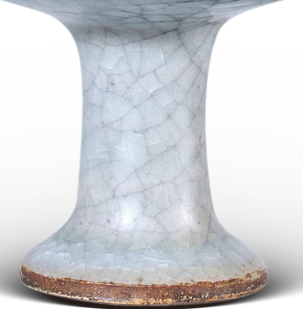 2018 年北京保利秋拍中,元 / 明哥窑高足盏(口径 7.4cm,高 8.2cm,開片自然),以1265 萬元人民幣成交,成為當年高古瓷亮點