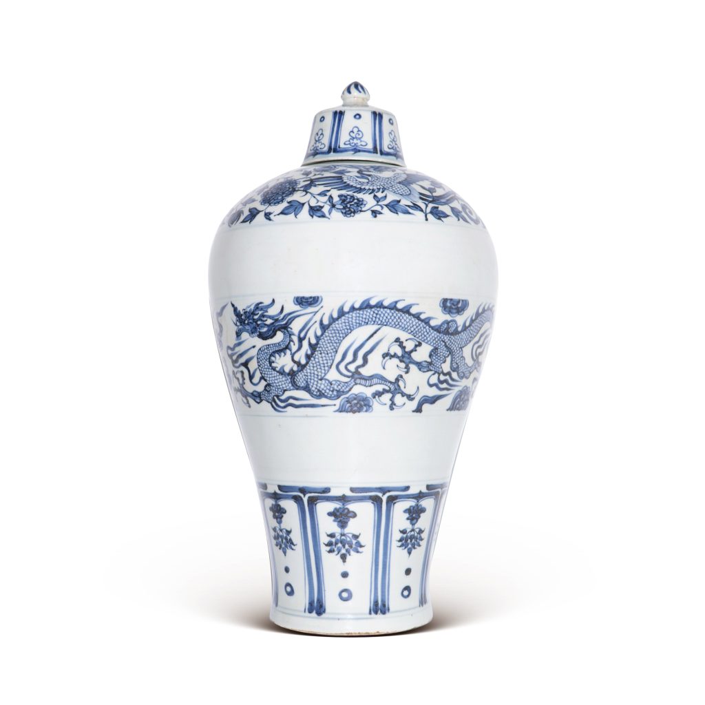 2025 年澳門多祿溙國際拍賣中,元青花龙凤纹带盖梅瓶(高 48cm,口径 5.6cm,盖身完整),从 4000 万港元起拍,最终以96,950,000 港元成交,创同类拍品纪录