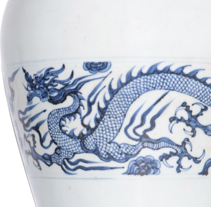 2024 年西泠印社春拍中,明空白期青花龙凤纹梅瓶(高 33.5cm,无盖,龙纹存半),以517,500 元人民币落槌
