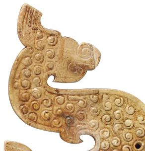 2017 年香港佳士得秋拍中,战国玉勾连云纹双龙带钩(长 12.5cm,勾连云纹饰龙身,工艺与玉佩同源),以1,500,000 港元落槌