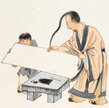 張大千〈張顛醉書圖〉的誕生,藏着藝術家的 “技法把控與尺幅野心”。作為書畫雙絕的大師,他以魏碑為宗,融合唐宋行草精髓,將自身 “大千體” 書法筆意融入人物畫,尺寸選擇直接影響氣韻表達:60-70cm 多為寫生小品,側重捕捉瞬間神態;130-140cm 屬精心構思的創作,需兼顧氣勢與筆墨細節;長卷因需表現 “書寫連貫性”,尺幅多達 300cm 以上,存世量不足同題材作品的 3%。工藝上的絕竅在 “筆法與尺幅的共舞”:如 138cm 的立軸,張旭衣紋用 “行草線描” 勾勒,線條粗細從 0.8cm 驟減至 0.1cm,模擬醉態下的揮動慣性;手中毛筆以 “焦墨飛白” 表現,筆鋒至筆桿墨色漸淡,長達 22cm 的筆鋒線條僅 0.3cm 寬卻力透紙背。更考驗功力的是 “書法細節”:案上紙卷僅 18×25cm,卻以 “大千體” 行草寫下 28 字,每字大小僅 1.5cm,筆畫間牽絲連帶清晰可辨,這項技法連張大千本人都曾坦言 “需飲酒三分醉方敢落筆”。