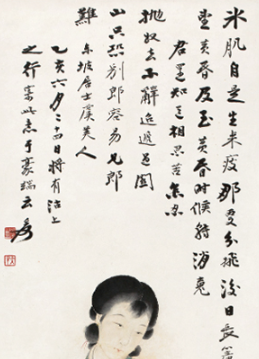 2012 年北京保利春拍中,〈仕女圖〉小品(縱 101.5cm,橫 50.5cm,水墨紙本,簡筆風格),以18,975,000 元人民幣拍出,可見精品小品仍具超高收藏價值。