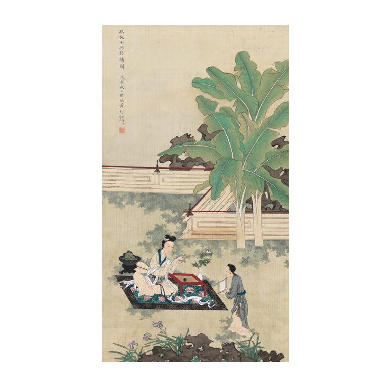 2020 年澳門多祿溙國際拍賣中,〈繡閣四景〉四条屏(單幅縱 70cm,橫 35cm,設色絹本,帶題跋),以928,000 元人民幣成交,可見成套作品對價值的加持 。